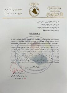 وقال المشهداني في كتاب رسمي وجّهه إلى النائب الأول لرئيس مجلس النواب، ونائبه، وأعضاء المجلس كافة، إن "عقد الجلسة جاء خلافًا للمادة (24/ثالثًا) من النظام الداخلي، التي تنص على اختصاص هيئة الرئاسة بدعوة المجلس إلى الانعقاد وتحديد جدول أعماله"، مشددًا على أن الجلسة لم تصدر عنها دعوة رسمية من هيئة الرئاسة، ولم يتحقق فيها النصاب القانوني المطلوب.