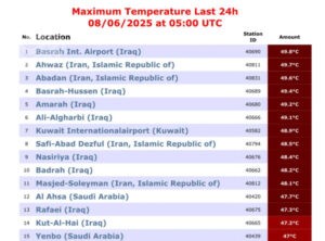 هيمن العراق، على قائمة درجات الحرارة الأعلى عالمياً بثماني مدن.