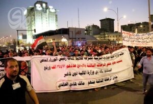 جريدة المدى > اخبار وتقارير > بالصور| تظاهرة بساحة التحرير.. موظفو عقود التربية يطالبون بالتثبيت على الملاك