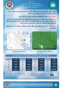 أعلنت هيئة الأنواء الجوية، اليوم الجمعة، حالة طقس العراق خلال الأيام المقبلة، فيما أشارت إلى استمرار الحرارة الأربعينية حتى نهاية آب الحالي وانخفاضها مع مطلع أيلول المقبل.