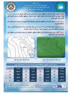 توقعت هيئة الأنواء الجوية، تراجع درجات الحرارة بدءا من الغد.