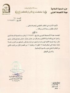 وبينت الوثيقة، أن "القرار صدر استنادا الى احكام المادة 17 /7 والمادة 11 من الفصل الأول من الباب الثاني من النظام الداخلي لحزب الدعوة الإسلامية".