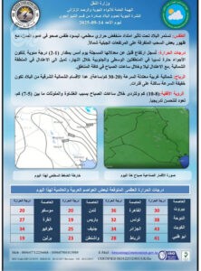 أعلنت هيئة الأنواء الجوية، اليوم الأحد، حالة طقس العراق خلال الأيام المقبلة.