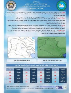 توقعت هيئة الأنواء الجوية في العراق استمرار انخفاض درجات الحرارة في مختلف مناطق البلاد خلال الأيام المقبلة، مع فرص متزايدة لهطول الأمطار في بعض المحافظات.