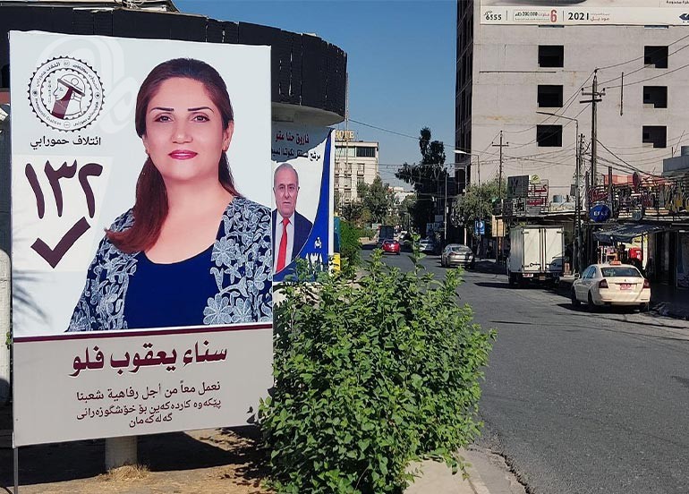 وكان ملصق انتخابي في كركوك قد أثار اهتمامًا واسعًا، يظهر فيه مرشحة مسيحية كمستقلة ولكن ضمن قائمة تحالف الإعمار والتنمية الانتخابي الذي يقوده رئيس الوزراء محمد شياع السوداني.