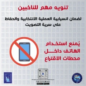 أكدت مفوضية الانتخابات، اليوم الاثنين، منع استخدام الهواتف المحمولة داخل محطات الاقتراع، في إطار الحفاظ على سرية التصويت وضمان نزاهة العملية الانتخابية.