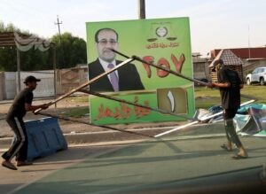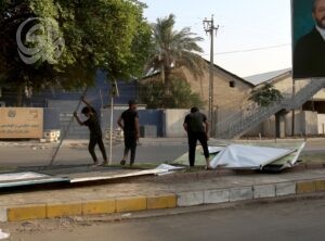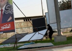 بالصور| رفع الدعايات الانتخابية من شوارع بغداد