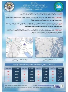 أعلنت هيئة الأنواء الجوية، اليوم الخميس، حالة طقس العراق خلال الأيام المقبلة، فيما توقعت بهطول أمطار في عدد من مدن البلاد غداً.
