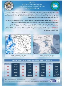 عدم استقرار جوي في العراق يبدأ بغيوم ويتحول إلى أمطار