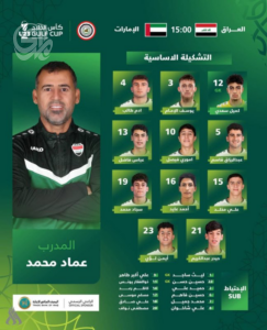 أعلن مدرب المنتخب الأولمبي لكرة القدم، عماد محمد، عن تشكيلة الفريق لمواجهة نظيره الإماراتي اليوم الأربعاء، ضمن الجولة الثالثة والأخيرة من بطولة كأس الخليج لمنتخبات دون 23 عاماً، التي تحتضنها قطر.