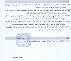 نشرت المفوضية العليا للانتخابات، اليوم الاثنين، 5 مواد بشأن المقاعد البرلمانية الشاغرة واستبدالها.