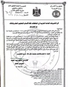 أعلنت وزارة التربية/ المديرية العامة للتعليم العام والاهلي والاجنبي السماح للطلبة الراسبين لسنتين متتاليتين في مدارس المتميزين وثانويات كلية بغداد/ الصف السادس العلمي(حصرا) بمواصلة دراستهم لمادة اللغة الفرنسية.