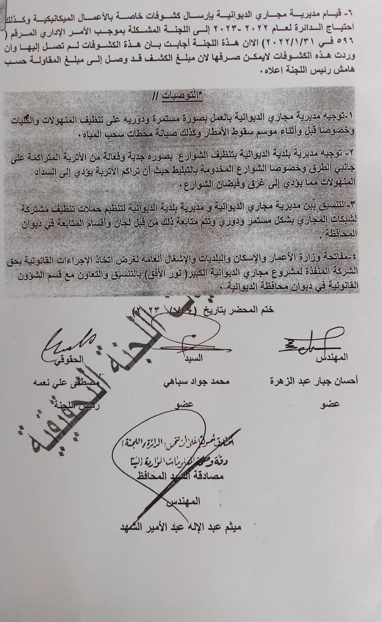 وشكلت الحكومة المحلية الحالية لجنة تحقيق على خلفية كثرة المشاكل التي سببتها الشركة اثناء تنفيذ المشروع، بعد ان خرجت بعدة توصيات، منها مفاتحة وزارة الاعمار والاسكان والبلديات لغرض اتخاذ الاجراءات القانونية بحق الشركة المنفذة للمشروع.