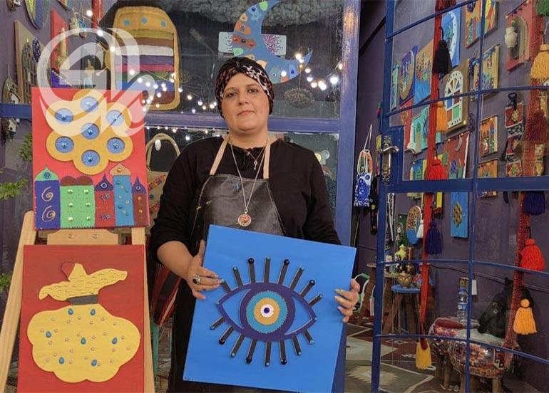حولت "هنا مظفر" موهبتها في الفن التشكيلي إلى مهنة ومصدر معيشة، إذ بدأت العمل في محل صغير عام 2020 بمنطقة "حمام المنقوشة" أيمن الموصل وتواصل العمل فيه حتى الآن.